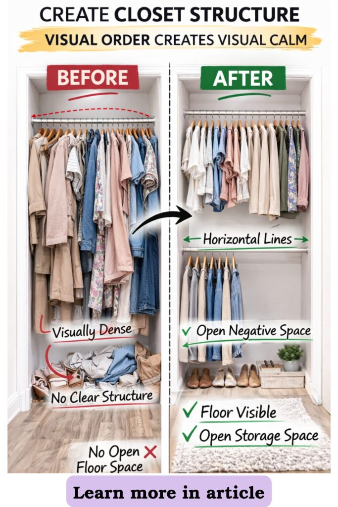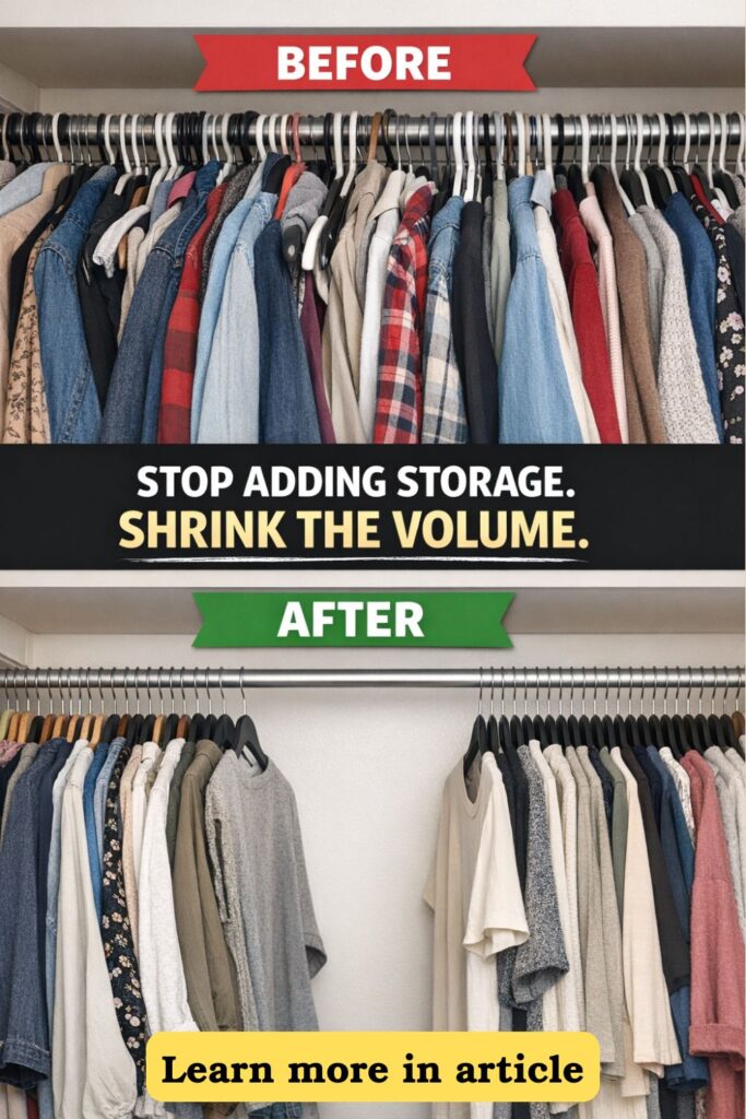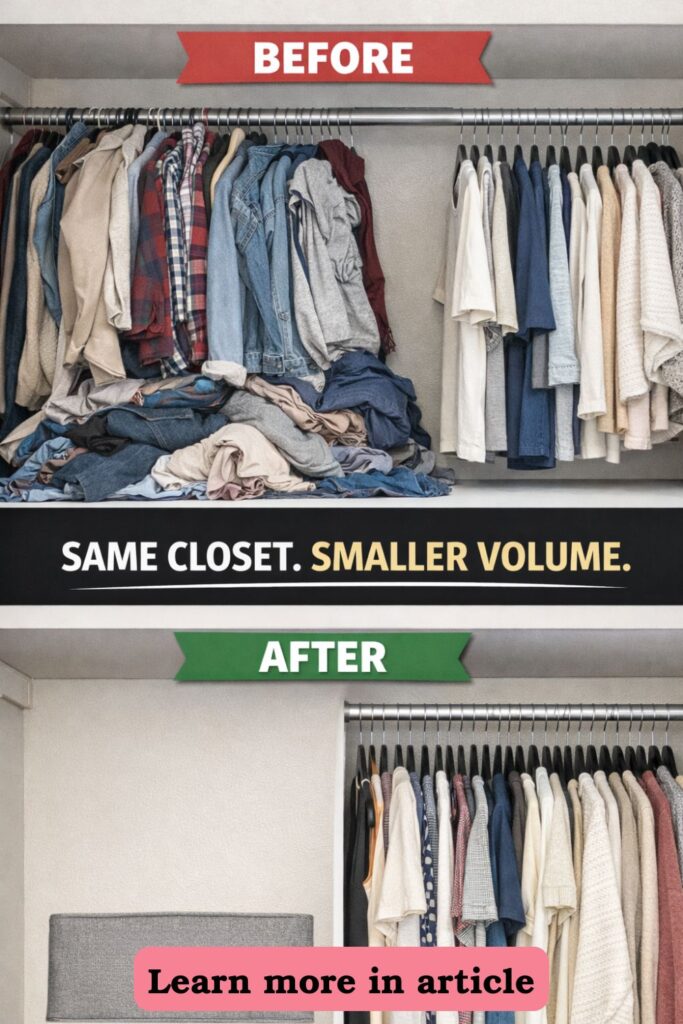 Switch to slim, uniform hangers: Matching hangers reduce visual noise and free up horizontal inches instantly. Thin hangers also prevent rods from overfilling too quickly.
