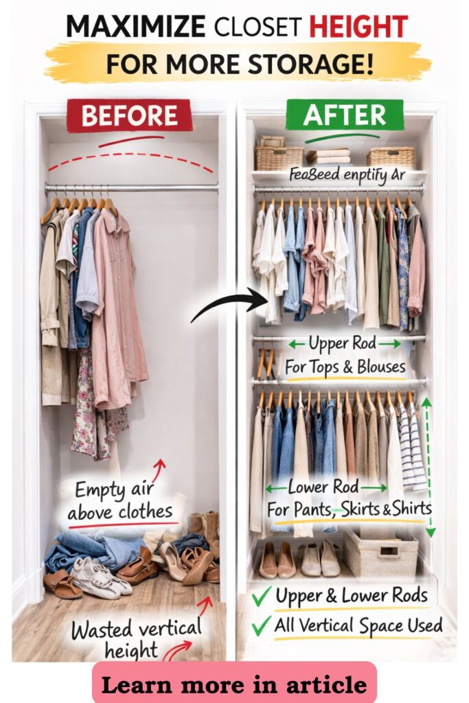 If your small closet feels cramped but you still see empty air above your clothes, you’re not out of space — you’re underusing height.